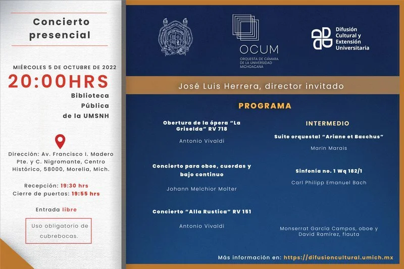 CONCIERTO: José Luis Herrera dirige la Orquesta de Cámara de la UMSNH