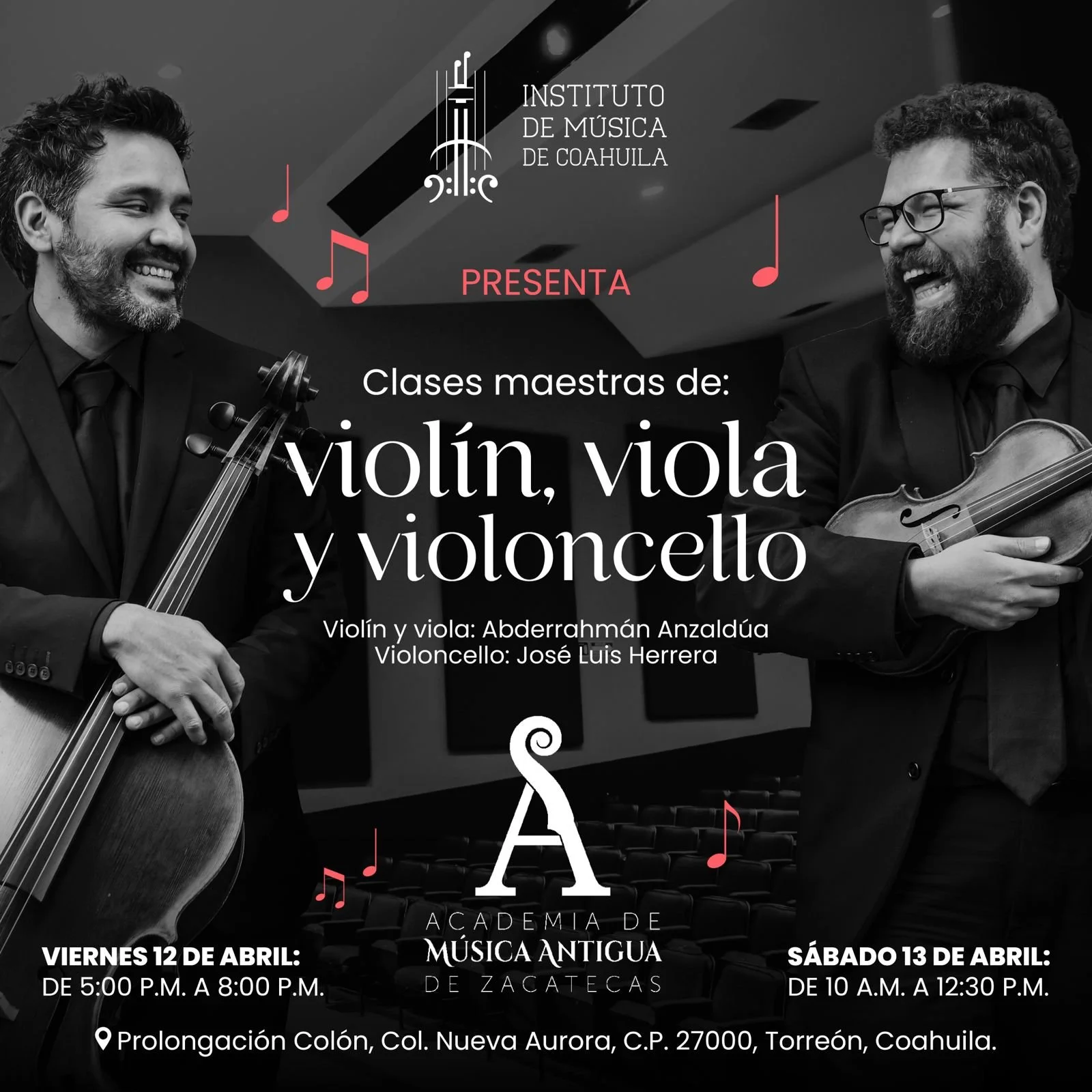 Los maestros Herrera y Anzaldúa ofrecen una clase maestra a jóvenes músicos torreonenses.